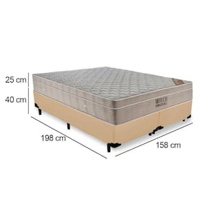 Cama Box Queen Bipartido Sintético + Colchão Ortobom Airtech Molas Ensacadas 158x198x65 Bege