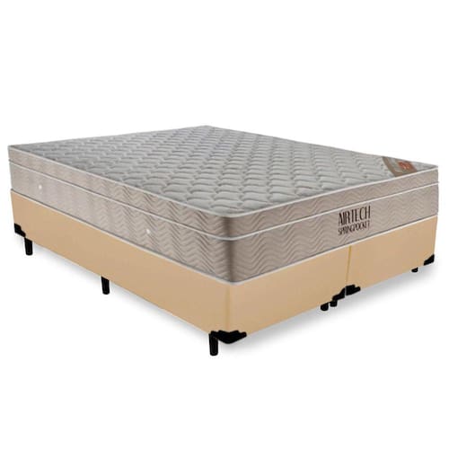 Cama Box Queen Bipartido Sintético + Colchão Ortobom Airtech Molas Ensacadas 65x158x198 Bege