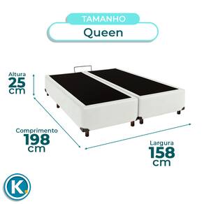Base box Queen ideal para otimizar o espaço do quarto com praticidadeRevestimento em Material Sintético : fácil de limpar e com visual modernoCompatível com colchões de 158x198cm, padrão solteiro nacionalFicha Técnica Cama Box:Modelo: UniversalMarca: NatureTamanho: QueenTecido: Material Sintético Largura: 158cmComprimento: 198cmAltura: 25cmAltura dos Pés: 13cmMaterial dos Pés: MadeiraSuporte de Peso: 150KgPeso: 30KgGarantia: 3 MesesAtenção:Antes da compra certifique-se de que o produto passa por elevadores, portas e corredores.As transportadoras não realizam entregas por escadas ou içamentos.Caso o item não caiba no elevador, a entrega será considerada concluída no térreo do prédio.A cor e tonalidade do produto pode variar de acordo com o dispositivo que o usuário está acessando.
