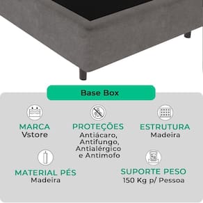 A Base Box Bravus da V-Store une funcionalidade e elegância, sendo a escolha perfeita para quem busca praticidade e durabilidade. Feita com madeira reflorestada, ela oferece excelente sustentação para o seu colchão, enquanto seu revestimento em tecido sintético garante resistência e facilidade de manutenção. Seu design compacto e sofisticado complementa a decoração do quarto com estilo.