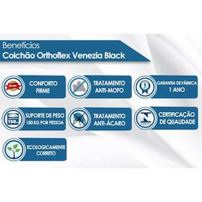 Abaixo segue os produtos do KIT: Conjunto Box Queen: Colchão Molas Orthoflex Bonnel Venezia + Base CRC Suede Black(158x198)
