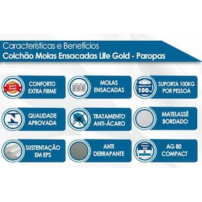Colchão Queen Molas Ensacadas Life Gold (158x198x24) - Paropas