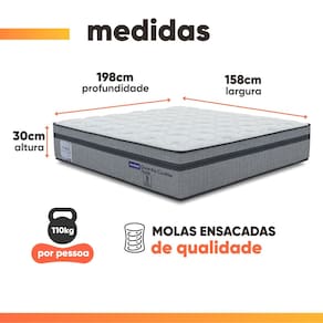 ITENS INCLUSOS: 1 Colchão Queen (158 cm), 1 Box Queen (158 cm)