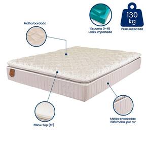 Seu pillow top possui revestimento em malha bordada, proporcionando uma enorme suavidade ao toque e excelente qualidade. Seu estofamento é composto por espuma D-45 selada de ótima qualidade certificada pelo INMETRO. Este colchão látex possui 36 cm de altura e uma perfeita sustentação sendo adaptado para todos os biotipos de usuários.