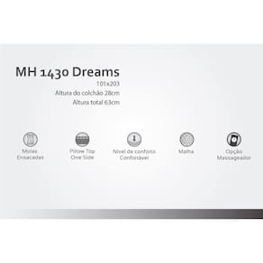 Colchão Twin Size-- 100x200x23 Magnético c/Vibro Massagem Ensacadas MasterPocket MH 1430 Dreams (Twin Size-- 100x200x23) - Herval
