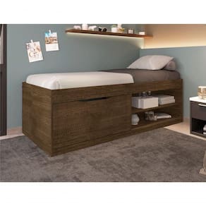 É produzida 100% em MDP que junto de seu acabamento proporciona muita qualidade e beleza além de toda funcionalidade que essa cama oferece.
