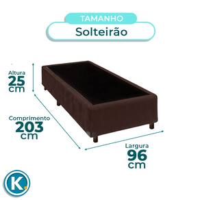 Base box solteirão ideal para otimizar o espaço do quarto com praticidadeRevestimento em Veludo: fácil de limpar e com visual modernoCompatível com colchões de 96x203cm, padrão solteiro nacionalEstrutura firme e resistente com suporte para até 150kgAltura total de 42cm proporciona visual robusto e confortávelVersátil para uso em dormitórios, quartos de hóspedes ou locaçõesDesign clean que combina com diferentes estilos de decoraçãoFicha Técnica Cama Box:Modelo: UniversalMarca: NatureTamanho: SolteirãoTecido: VeludoLargura: 96cmComprimento: 203cmAltura: 25cmAltura dos Pés: 13cmMaterial dos Pés: MadeiraSuporte de Peso: 150KgPeso: 20KgGarantia: 3 MesesAtenção:Antes da compra certifique-se de que o produto passa por elevadores, portas e corredores.As transportadoras não realizam entregas por escadas ou içamentos.Caso o item não caiba no elevador, a entrega será considerada concluída no térreo do prédio.A cor e tonalidade do produto pode variar de acordo com o dispositivo que o usuário está acessando.