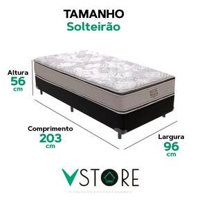 A tecnologia que a sua casa merece está na V-Store! O Conjunto Colchão Four Seasons e Base Box Bravus oferece o equilíbrio perfeito entre conforto e funcionalidade. O colchão, com molas ensacadas, pillow top e EPS, garante excelente suporte e conforto térmico, ideal para casais. Já a base, feita de madeira reflorestada e revestida em tecido sintético, oferece durabilidade e praticidade, com amplo espaço para armazenamento.Característica Do Colchão: Modelo: Four SeasonMarca: V-StoreTamanho: SolteirãoDimensões: 96x30x203 (Largura x Altura x Comprimento)Conforto: MédioSistema: Molas EnsacadasPillow: Pillow TopPeso Máximo recomendado: 150 kg (Por pessoa)Proteções: Antiácaro, antialérgico, antifungo, antimofoGarantia: 12 Meses (Espuma) / 10 anos ( Conjunto de Molas Ensacadas)Característica Da Base: Marca: V-StoreModelo: BravusCor do Box: PretoTamanho: SolteirãoDimensões: 96x44x203 (Largura x Altura x Comprimento)Estrutura: MadeiraPeso máximo recomendado: 150 kg (Por Pessoa)Altura do Box: 26 cmAltura dos Pés: 6 cmAltura total: 44 cmGarantia: 12 Meses (Estrutura) / 3 meses (Tecido)Selo Ecologicamente CorretoAtenção:- Antes de finalizar sua compra, recomendamos que verifique se as dimensões do produto são adequadas para serem transportadas pelos elevadores, portas, escadas e corredores de sua residência. Ressaltamos que não nos responsabilizamos pelo transporte do produto por meios específicos, como escadas, guinchos ou içamentos.- É possível que hajam leves variações de cor de acordo com o dispositivo que está sendo utilizado como smartphones, computadores, monitores e outros.