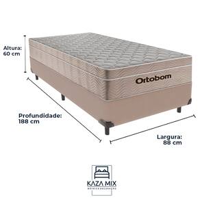 A Base Box da KazaMix garante conforto e qualidade. A madeira utilizada na produção da Base Box é proveniente de reflorestamentos, o que garante uma matéria-prima renovável e sustentável. Além disso, a base box é revestida com um tecido de alta qualidade, que proporciona um toque suave e agradável.FICHA TÉCNICA DO COLCHÃOModelo: AirtechMarca: OrtobomTamanho: SolteiroDimensões: 88x188x25 (Largura x Comprimento x Altura)Conforto: MacioSistema: Molas EnsacadasPillow: Euro PillowPeso Máximo recomendado: 120 kg (Por pessoa)Proteções: Antiácaro, antialérgico, antifungo, antimofoGarantia: 12 Meses pelo fabricanteFICHA TÉCNICA DA BASEModelo: BoxMarca: KazaMixCor: BegeTamanho: SolteiroDimensões: 88x188x37 (Largura x Comprimento x Altura)Altura dos pés: 5Altura Total: 37Peso Máximo recomendado: 150 kg (Por pessoa)Proteções: Antiácaro, antialérgico, antifungo, antimofoGarantia: 3 Meses pelo fabricanteAtenção: Certifique-se de que o produto passa por elevadores, portas, escadas e corredores, pois não realizamos içamentos ou transporte especial. Não fazemos montagem ou desmontagem de produtos. As cores podem sofrer uma pequena alteração de acordo com a tela. Marca: Não Informado