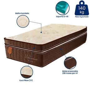 Com estrutura em molas ensacadas com 208 molas por m² que se adaptam a curvatura e formato do corpo, espuma D-45 que juntos garante maior estabilidade ao seu corpo, tornando sua noite de sono muito mais confortável, além de oferecer uma maior sustentação de peso com capacidade para suportar até 140 Kg por pessoa. Além do mais, ele também traz um Euro Pillow Turn Free, que serve como uma camada extra de espuma proporcionando melhor alinhamento e acabamento ao colchão, revestimento em malha bordado, tratamento antimofo, antifungos, antiácaros e antialérgico, tudo para que você possa usufruir e aproveitar ao máximo de um sono tranquilo, relaxado e saudável.
