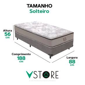 A tecnologia que a sua casa merece está na V-Store! O Conjunto Colchão Four Seasons e Base Box Bravus oferece o equilíbrio perfeito entre conforto e funcionalidade. O colchão, com molas ensacadas, pillow top e EPS, garante excelente suporte e conforto térmico, ideal para casais. Já a base, feita de madeira reflorestada e revestida em tecido sintético, oferece durabilidade e praticidade, com amplo espaço para armazenamento.Característica Do Colchão: Modelo: Four SeasonMarca: V-StoreTamanho: SolteiroDimensões: 88x30x188 (Largura x Altura x Comprimento)Conforto: MédioSistema: Molas EnsacadasPillow: Pillow TopPeso Máximo recomendado: 150 kg (Por pessoa)Proteções: Antiácaro, antialérgico, antifungo, antimofoGarantia: 12 Meses (Espuma) / 10 anos ( Conjunto de Molas Ensacadas)Característica Da Base: Marca: V-StoreModelo: BravusCor do Box: CinzaTamanho: SolteiroDimensões: 88x44x188 (Largura x Altura x Comprimento)Estrutura: MadeiraPeso máximo recomendado: 150 kg (Por Pessoa)Altura do Box: 26 cmAltura dos Pés: 6 cmAltura total: 44 cmGarantia: 12 Meses (Estrutura) / 3 meses (Tecido)Selo Ecologicamente CorretoAtenção:- Antes de finalizar sua compra, recomendamos que verifique se as dimensões do produto são adequadas para serem transportadas pelos elevadores, portas, escadas e corredores de sua residência. Ressaltamos que não nos responsabilizamos pelo transporte do produto por meios específicos, como escadas, guinchos ou içamentos.- É possível que hajam leves variações de cor de acordo com o dispositivo que está sendo utilizado como smartphones, computadores, monitores e outros.