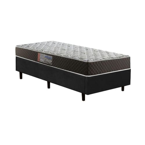 Cama Box Solteiro Colchão Mola Ensacada Belos Sonhos + Box Suede 60x88x188 - Preto
