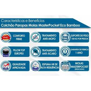 Colchão Solteiro Molas Ensacadas Molas Ensacadas Eco Bamboo Pillow Top (88x188x36) - Paropas