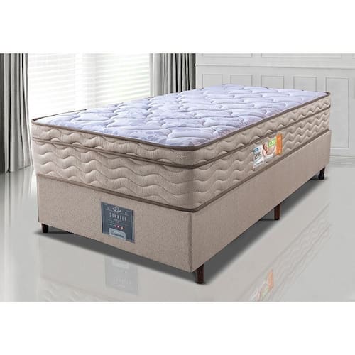 Tipo de Pillow: Euro Pillow: Significa ter um travesseiro Quadrado gigante em cima do colchão. O Euro Pillow é uma camada alta e reta presa ao colchão confeccionado em tecido matelasse bordado e com espuma soft. Tem a aparência de um outro colchão preso ao próprio. Esse Colchão possui EuroPillow e tem a beleza das linhas clássicas, aliada à tradição e tecnologia.