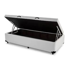 Estrutura Interna: Estrutura em madeira 100% de Reflorestamento Tecido: Corino Cor: Branco Necessita Montagem: Não Ambiente: Quarto Altura: 37 cm Largura: 88 cm Profundidade: 188 cm Possui Pés: Sim Altura dos Pés: 6 cm Altura Interna: 28 cm Baú: Pistão a Gás Contém 02 puxadores, para maior facilidade na abertura Contém 01 arco na parte de trás para o colchão não escorregar