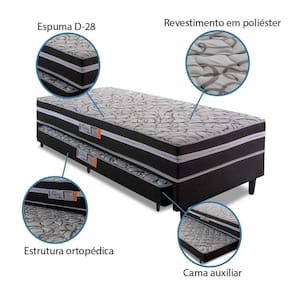 Cama Box Solteiro Com Cama Auxiliar 88x41cm Aspen Hellen A cama box com cama auxiliar Aspen é o conjunto ideal pra quem precisa de conforto e praticidade. Feita com materiais de alta qualidade, sua espuma extra firme se adapta aos contornos do corpo, promovendo uma melhor distribuição de peso sobre o colchão. Revestido com um tecido antiácaro e antifúngico, garantindo uma maior proteção e durabilidade. Ela acompanha uma cama auxiliar, facilitando o uso no dia a dia. Com ela, suas noites de sono nunca mais serão as mesmas.