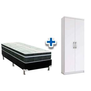Cama Box Solteiro CRC + Bonnel Orthoflex 78 + Armário Multiuso Margarida Branco