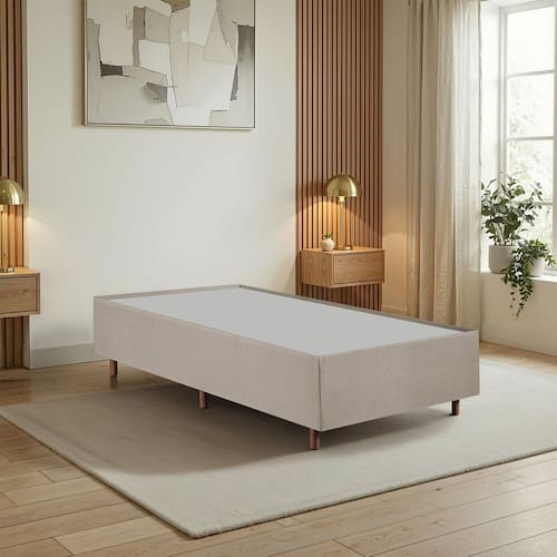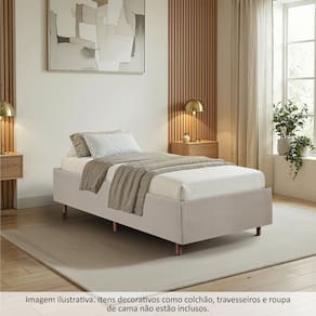 Cama Box Solteiro em Madeira Eucalipto Base Resistente e Durável Santorini Espresso Móveis Linho Bege