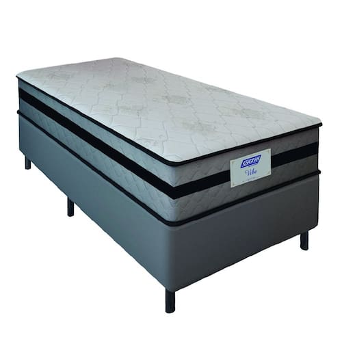MODELO: Cama Box Solteiro Colchão Com Molas Ensacadas Vibe 88x188x60cm Suede Suporta Até 110 Kg Por Pessoa
