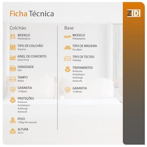 Conjunto Cama Box Twin Size Espuma D45 Philadelphia Extra Firme