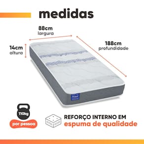 ITENS INCLUSOS: 1 colchão solteiro de (88 cm) a Vácuo, 1 box de (88 cm)