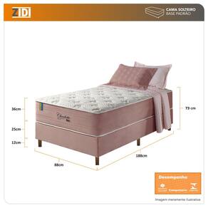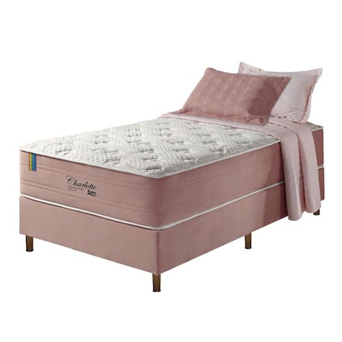 Cama Box Solteiro Rose + Colchão Molas Ensacadas Visco Gel Charlotte 88x188x73cm