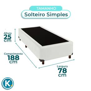 Base box solteiro ideal para otimizar o espaço do quarto com praticidadeRevestimento em Material Sintético : fácil de limpar e com visual modernoCompatível com colchões de 78x188cm, padrão solteiro nacionalEstrutura firme e resistente com suporte para até 150kgAltura total de 42cm proporciona visual robusto e confortávelVersátil para uso em dormitórios, quartos de hóspedes ou locaçõesDesign clean que combina com diferentes estilos de decoraçãoFicha Técnica Cama Box:Modelo: UniversalMarca: NatureTamanho: SolteiroTecido: Material Sintético Largura: 78cmComprimento: 188cmAltura: 25cmAltura dos Pés: 13cmMaterial dos Pés: MadeiraSuporte de Peso: 150KgPeso: 15KgGarantia: 3 MesesAtenção:Antes da compra certifique-se de que o produto passa por elevadores, portas e corredores.As transportadoras não realizam entregas por escadas ou içamentos.Caso o item não caiba no elevador, a entrega será considerada concluída no térreo do prédio.A cor e tonalidade do produto pode variar de acordo com o dispositivo que o usuário está acessando.