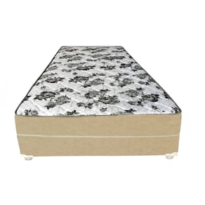 Cama Box Solteiro Suede Bege + Colchão Solteiro Suede Bege Orto Molas Bonnel 88x188x55