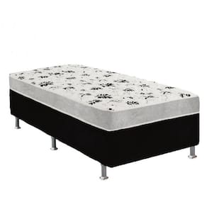 Cama Box Solteiro Suede Preto + Colchão Solteiro Suede Cinza Orto Molas Bonnel 88x188x55