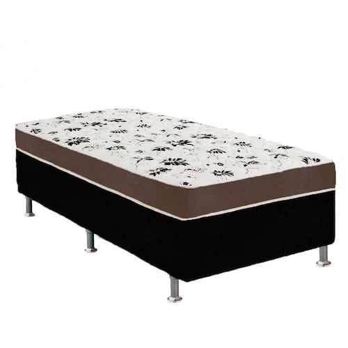 Cama Box Solteiro Suede Preto + Colchão Solteiro Suede Marrom Orto Molas Ensacada 88x188x55