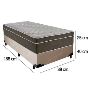 Cama Box Suede Solteiro + Colchão SerenePrime Molas Ensacadas 88x188x65 Bege
