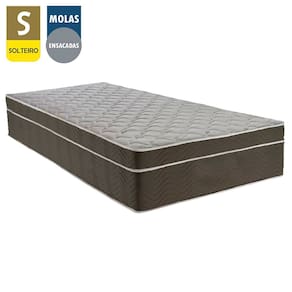 Cama Box Suede Solteiro + Colchão SerenePrime Molas Ensacadas 88x188x65 Marrom