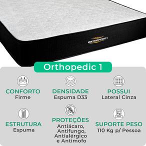A tecnologia que a sua casa merece está na V-Store! O Conjunto Colchão Orthopedic + Base Box Bravus da V-Store é a união perfeita de conforto e resistência. O colchão, com espuma D33 e suporte extra firme, garante alinhamento ideal e proteção contra ácaros, alergias e fungos. A base box, com estrutura de madeira reflorestada e acabamento em tecido sintético, oferece durabilidade e um design moderno para o seu dormitório.Característica Do Colchão: Modelo: OrthopedicMarca: V-StoreTamanho: ViúvoDimensões: 128x30x188 (Largura x Altura x Comprimento)Conforto: Extra FirmeSistema: EspumaPillow: Não se aplicaPeso Máximo recomendado: 110 kg (Por pessoa)Proteções: Antiácaro, antialérgico, antifungo, antimofoGarantia: 12 Meses (Espuma)Característica Da Base: Marca: V-StoreModelo: BravusTamanho: ViúvoDimensões: 128x44x188 (Largura x Altura x Comprimento)Estrutura: MadeiraPeso máximo recomendado: 150 kg (Por Pessoa)Altura do Box: 26 cmAltura dos Pés: 6 cmAltura total: 44 cmGarantia: 12 Meses (Estrutura) / 3 meses (Tecido)Selo Ecologicamente CorretoAtenção:- Antes de finalizar sua compra, recomendamos que verifique se as dimensões do produto são adequadas para serem transportadas pelos elevadores, portas, escadas e corredores de sua residência. Ressaltamos que não nos responsabilizamos pelo transporte do produto por meios específicos, como escadas, guinchos ou içamentos.- É possível que hajam leves variações de cor de acordo com o dispositivo que está sendo utilizado como smartphones, computadores, monitores e outros.