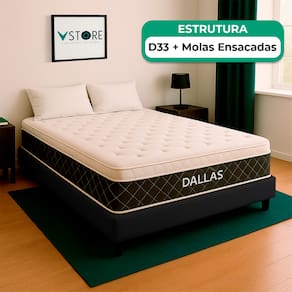 A tecnologia que a sua casa merece está na V-Store! O Conjunto Colchão Dallas e Base Box Bravus oferece a combinação perfeita de conforto, durabilidade e estilo. O Colchão Dallas, com molas ensacadas, espuma D33, Euro Pillow e tecnologia EPS, proporciona excelente suporte e conforto térmico. Já a Base Box Bravus, feita com madeira reflorestada e revestida com tecido sintético, garante resistência, durabilidade e um design sofisticado que complementa qualquer ambiente. Ideal para quem busca praticidade e elegância no quarto. Adquira já a sua Base Box Bravus V-Store e transforme seu dormitório com qualidade e estilo!Característica Do Colchão: Modelo: DallasMarca: V-StoreTamanho: ViuvoDimensões: 128x20x188 (Largura x Altura x Comprimento)Conforto: MédioSistema: Molas EnsacadasPillow: Euro PillowPeso Máximo recomendado: 150 kg (Por pessoa)Proteções: Antiácaro, antialérgico, antifungo, antimofoGarantia: 12 Meses (Espuma) / 10 anos ( Conjunto de Molas Ensacadas)Característica Da Base: Marca: V-StoreModelo: BravusCor do Box: PretoTamanho: ViúvoDimensões: 128x44x188 (Largura x Altura x Comprimento)Estrutura: MadeiraPeso máximo recomendado: 150 kg (Por Pessoa)Altura do Box: 26 cmAltura dos Pés: 6 cmAltura total: 44 cmGarantia: 12 Meses (Estrutura) / 3 meses (Tecido)Selo Ecologicamente CorretoAtenção:- Antes de finalizar sua compra, recomendamos que verifique se as dimensões do produto são adequadas para serem transportadas pelos elevadores, portas, escadas e corredores de sua residência. Ressaltamos que não nos responsabilizamos pelo transporte do produto por meios específicos, como escadas, guinchos ou içamentos.- É possível que hajam leves variações de cor de acordo com o dispositivo que está sendo utilizado como smartphones, computadores, monitores e outros.