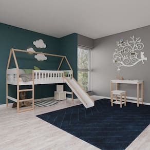 Transforme o quarto das crianças em um espaço de diversão, conforto e imaginação com a encantadora Cama Cabana Elevada com Escorregador Arredus! Colchão indicado no tamanho padrão solteiro 188×88 cm. Estrutura em madeira maciça e MDF. Acabamento branco e natural, que traz um toque moderno e acolhedor à decoração. Sistema de montagem com parafusos estruturais. Pés arredondados que garantem mais segurança e leveza ao design, evitando quinas e proporcionando um visual delicado e harmonioso. O escorregador transforma o momento de acordar em pura diversão! A altura elevada cria um espaço livre sob a cama ideal para guardar brinquedos ou montar uma cabaninha. Encante as crianças e traga mais alegria para o quarto com a Cama Cabana Elevada com Escorregador Arredus! Acompanha Cama Auxiliar: Não Acompanha Colchão: Não Acompanha Dossel: Não Acompanha Escorregador: Sim Altura do Estrado até o Chão: 60,2 cm Altura dos Pés: 110,4 cm Altura Máxima dos Pés: 110.4000 Ambiente Principal: Quarto Infantil codigo_ean: 7900288287694 Complexidade da Montagem: Alta: deve ser montado por um montador especializado Cor: Branco/Natural Cor do Produto: Branco/Natural Escala de Brilho: Semi-Brilho Informações Complementares: Peso suportado indicado se bem distribuído Itens Inclusos: 1 Cama, Kit Ferragens e Manual de Montagem Linha ou Coleção: Arredus Manual de Montagem e Instalação: https://product-hub-prd.madeiramadeira.com.br/695088462/documents/9238579a-869b-4e49-8f0a-96c869fc1ce63305222505517618481375287.pdf Marca: KK Móveis Material dos Pés: Madeira Maciça Material Principal: MDF modular: Não Necessita Montagem: Sim Origem do Produto: Nacional Permite a Utilização de Cama Auxiliar: Não Peso: 47,5 kg Possui Baú: Não Possui Escrivaninha: Não Possui Estante: Não Possui Gavetas: Não Possui Pés: 04 Possui Portas: Não Possui Prateleiras: Não Possui Rodízio: Não Recomendações de Uso, Manutenção e Limpeza: Na limpeza não utilizar produtos químicos e abrasivos, usar apenas um pano umidecido, seguido de pano seco, para garantir a maior durabilidade do móvel. Sapatas Niveladoras: Não Sistema de Montagem: Parafusos Suporta Até (kg): 80 kg Tamanho da Cama: Solteiro Tamanho do Colchão Indicado (L x C): 188x88 Tipo de Cama: Cama Alta Tipo de Colchão: Solteiro Tipo de Estrado: Fixo Tipo de Madeira Maciça dos Pés: Pinus Marca: Não Informado