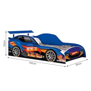 AS IMAGENS SÃO MERAMENTE ILUSTRATIVAS E PODEM SOFRER VARIAÇÕES DE COR E PEQUENOS DETALHES DE ACORDO COM O SEU MONITOR, ILUMINAÇÃO DO AMBIENTE E ATÉ MESMO A SUA PERCEPÇÃO Carro Racing Solteiro Para Meninos Mdf - Racing Car RelÃmpago / Azul