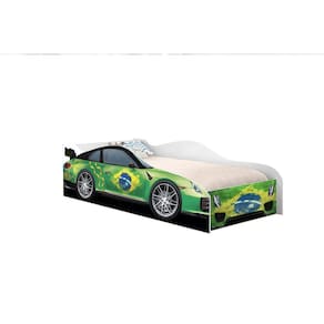 Cama em formato de carro, com design moderno e direcionado no clima da copa, tudo pensado para o bem estar e segurança da criança, conferindo beleza, qualidade e harmonia ao ambiente. Laterais com dimensões que serve de proteção aos pequenos. Bordas arredondadas evitando riscos de acidentes. Adesivo em Vinil de alta qualidade e resistência. Permite agilidade e fácil acesso da criança ao móvel devido à proximidade do estrado ao piso. Produzida 100% em MDF conferindo MAIOR PROTEÇÃO e DURABILIDADE, pintura UV, proporcionando melhor acabamento e durabilidade à sua estrutura.