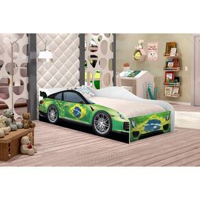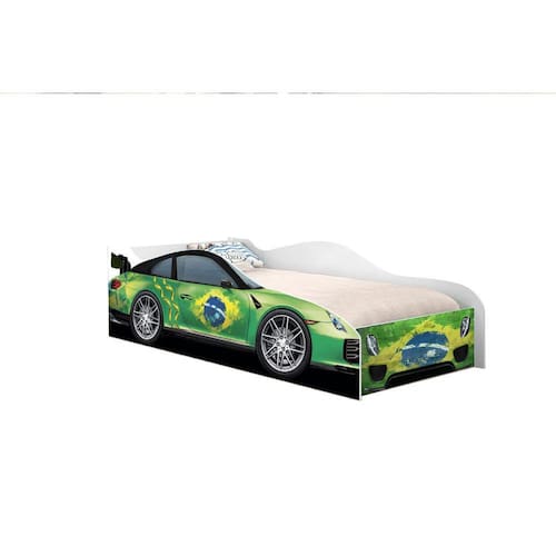CAMA CARRO SOLTEIRO ADESIVADA BRASIL LUKE MÓVEIS