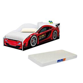 Cama Carro Vermelho Solteiro de Baú com Colchão Incluso