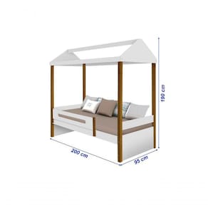 Cama Casa Sara Branco/Mel com Cordão de Luzes LED com colchão