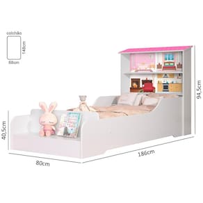 A Cama Casa Infantil Princesa é feita com um design totalmente pensado para um conto de Era uma vez, com cabeceira em formato de casa o design traz um toque mágico ao ambiente, oferecendo prateleiras que permitem guardar suas bonecas e objetos, deixando assim um quarto ainda mais charmoso e agradável.