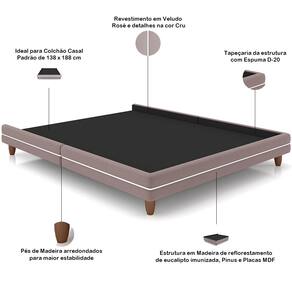 Revestimento em tecido Veludo na cor Rosê e detalhe na cor Cru.