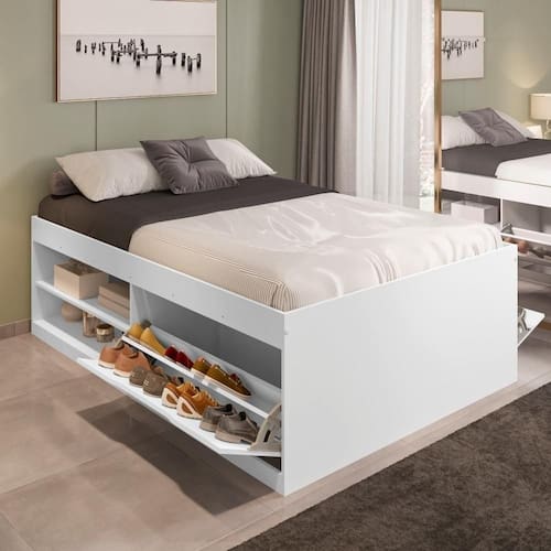 A Cama Casal Sapateira é o móvel ideal para completar seu quarto aproveitando o espaço disponível de forma mais eficiente.