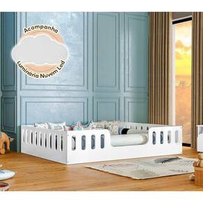 Cama Casal Branca Helo Com Cercado + Luminária Led - Cor: Branco