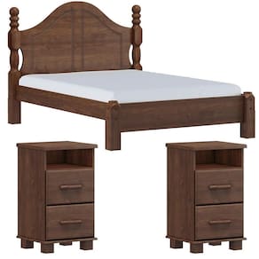 Modelo: Cama Casal Clássica 02 Mesas de Cabeceira Madeira Maciça Milani Store