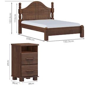 Conjunto Cama Casal Classica 02 Mesas de Cabeceira projetado para proporcionar charme, sofisticação e funcionalidade ao seu ambiente. A cama, com design clássico e atemporal, é produzida em madeira maciça de pinus de reflorestamento, garantindo resistência e durabilidade. Sua pintura acetinada com verniz PU e UV oferece um acabamento refinado e proteção extra, realçando a beleza natural da madeira. Os pés torneados em madeira maciça adicionam um toque de elegância e robustez à estrutura. Ideal para colchão de casal tamanho 1,38x1,88m. Não acompanha colchão. As mesas de cabeceira, também em madeira maciça de pinus de reflorestamento, seguem o mesmo padrão de qualidade e acabamento. A pintura acetinada com verniz PU e UV proporciona um toque suave e resistente, realçando a beleza da madeira e protegendo contra desgastes. Com 02 gavetas equipadas com corrediças telescópicas para deslizamento suave e um nicho adicional para organização de livros ou objetos decorativos, as mesas de cabeceira aliam praticidade e sofisticação. O tampo de 25mm de espessura confere robustez ao design, enquanto os puxadores e pés em madeira maciça garantem um acabamento natural e refinado. Juntos, esses móveis criam um ambiente harmonioso, perfeito para o seu descanso e organização. Estes móveis chegarão em sua casa separados em 06 volumes.