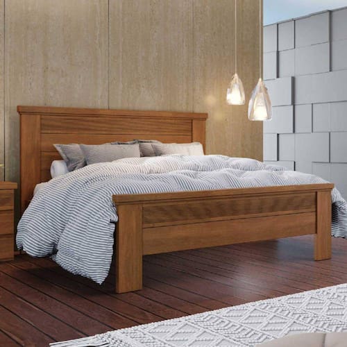 Todo mundo sonha em ter um quarto todo arrumadinho com aquele toque de quarto de revista, esta cama vai deixar seu ambiente muito mais luxuoso. Fabricada em MDF e Pinos, design moderno, pés reforçados. Apliques frisados na cabeceira e peseira, estrado com dez ripas e cinco travessões, dispensando pés centrais para facilitar a limpeza. O apoio de todos os travessões são em PVC para evitar ruídos.