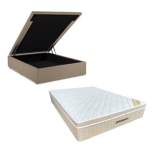 Base Baú Colchão Casal Phisycal Camurça Bege 138X188X39 Ortobom