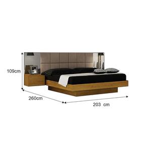 Particularidades da Cama: Características: - Fabricado em MDF; - Para colchão de 1,58m x 1,98m; - Painel estofado; - Espelhos laterais; - Mesa de cabeceira suspensa; - Corrediça telescópica;