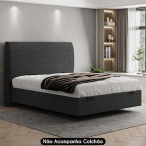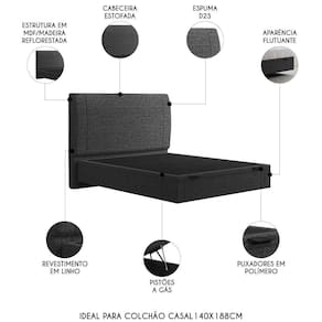 A Cama Casal Flutuante Baú Cabeceira 140cm Fly S05 Linho Preto, da Mpozenato, é uma cama que representa o ápice do Design Moderno.